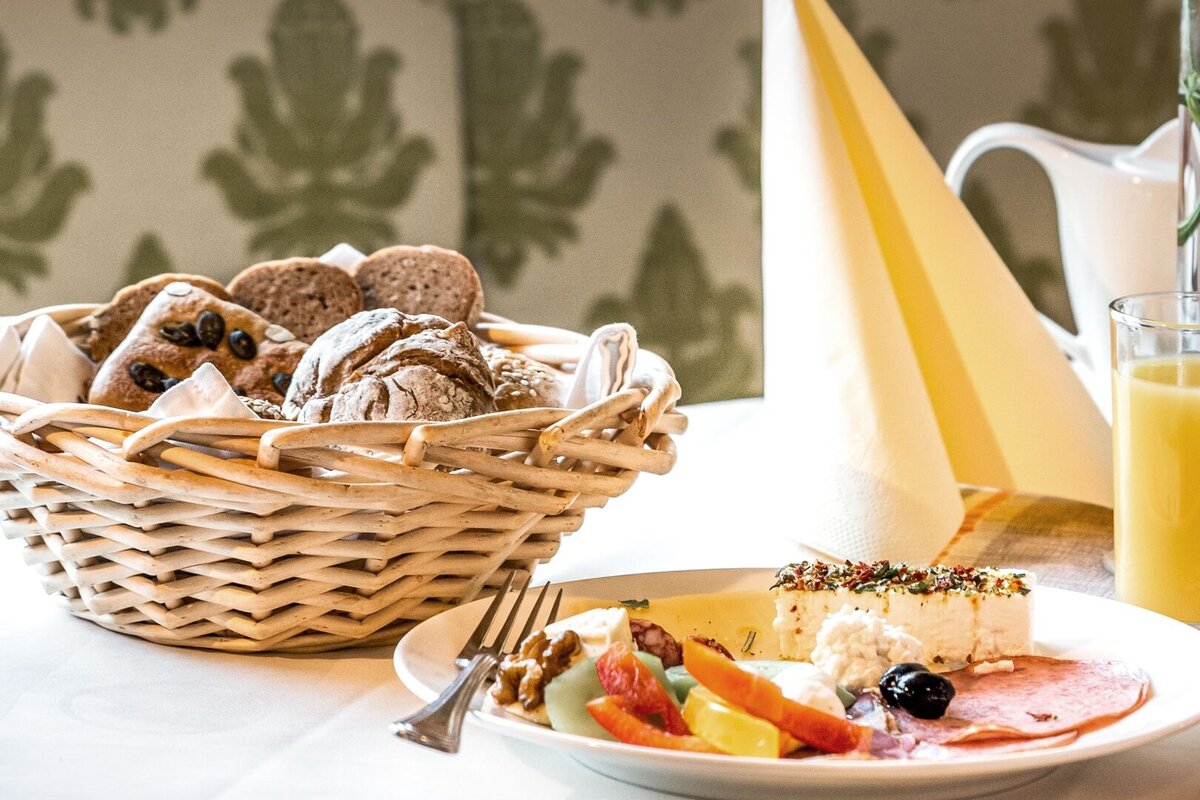 Starten Sie in den Tag mit einem vielfältigen Frühstücksbuffet – mit regionalen Produkten, hausgemachten Marmeladen und frischem Gebäck. Abends bieten wir drei Wahlmenüs an, darunter immer ein vegetarisches, begleitet von frischen Salaten vom Salatbuffet.
